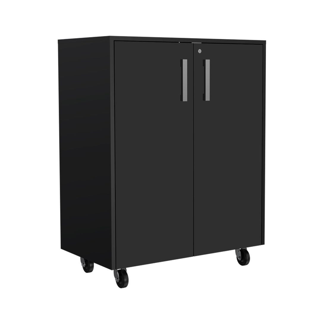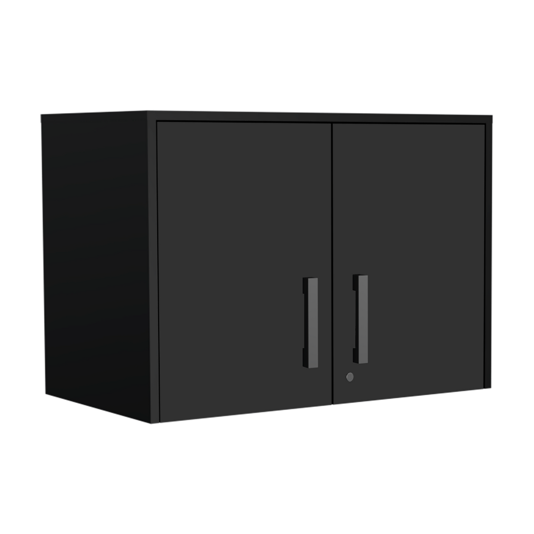 Embrace organization and style with the Akron 6 Piece Garage Set. Exclusively designed to optimize your garage space, this set harmoniously blends spacious storage and exclusive aesthetics. Crafted from resistant black manufactured wood, the six-piece ensemble offers durability and a sleek look. The Storage Wall Cabinet offers optimal organization and secure storage for your garage. Easy to mount on any wall, it features double doors with handles for easy access. It includes a sturdy inner shelf, enhancing your storage options. The cabinet has a padlock and key for added security, ensuring your tools and essentials stay safe. The Storage Cabinet, with its smooth casters, offers easy mobility and secure storage in your garage. It features a double-door cabinet with a padlock and key for added security and an inner storage shelf for enhanced organization. The Storage Drawer Base Cabinet is a functional and mobile solution for your garage storage needs. Equipped with casters for easy maneuverability, this base cabinet features three spacious drawers (8.8"H x 13.4"W x 26.1"D), perfect for storing tools and supplies. The top drawer is lockable with the included padlock for added security.