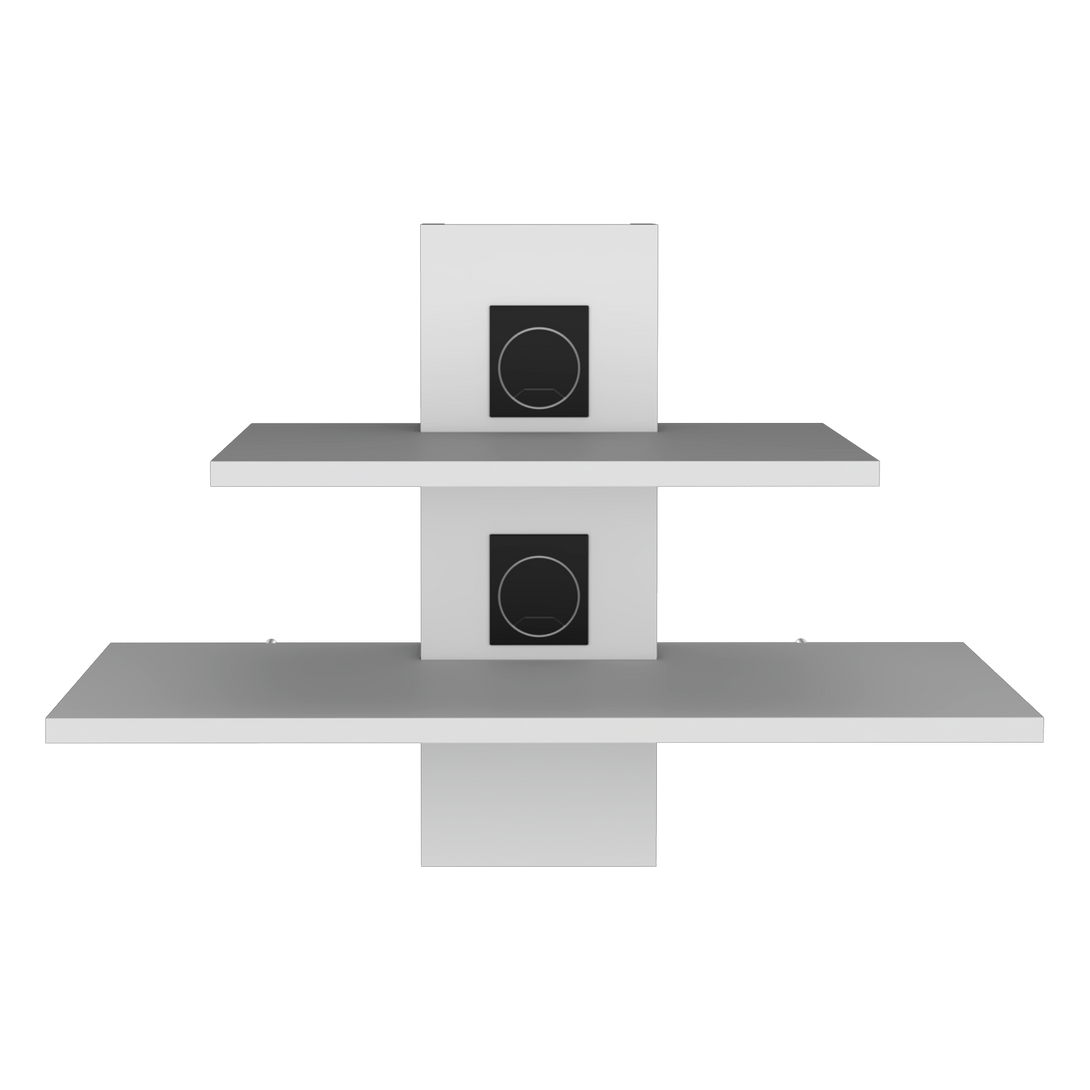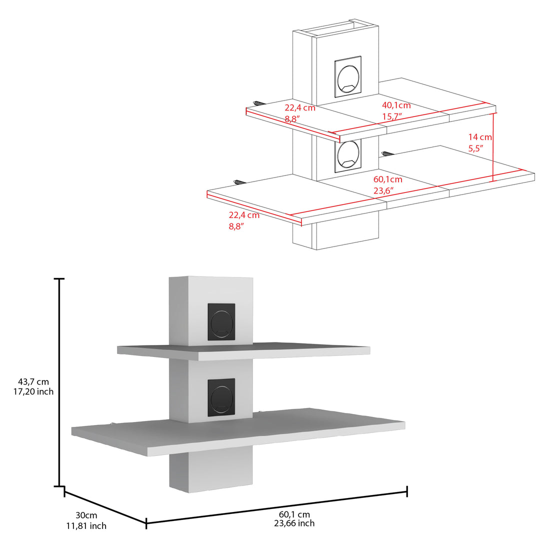 Elevate your interior with the Burgos Floating Shelf – a symbol of modern elegance and practical design. This full-wall assembly shelf features two generously sized platforms (23.6"W x 15.7"W x 8.8"D), offering ample space to showcase decorative pieces, store media consoles, or keep your remote controls within reach. Its thoughtful inclusion of 2 cable management holes with covers sets the Burgos apart, ensuring your space stays orderly and stylish. Crafted with a refined white manufactured wood finish, it adds a touch of contemporary sophistication to any room.