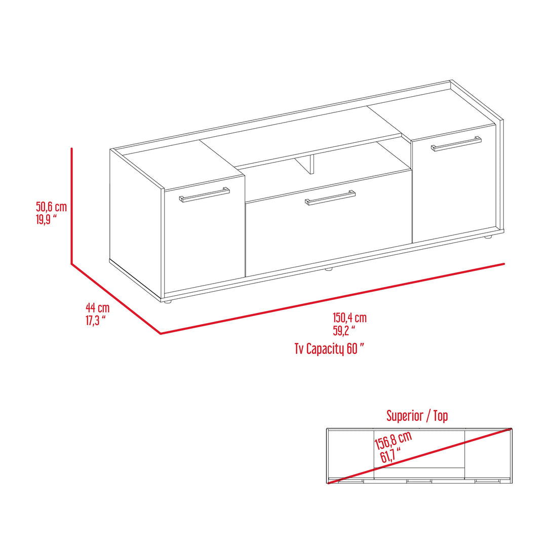 - Dimensions in inches: 19.9"H X59.2"W X17.3"D